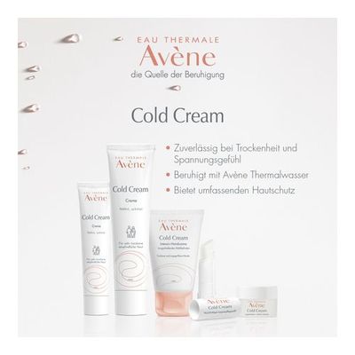 Die Pflegelinie Cold Cream von Eau Thermale Avène wirkt zuverlässig gegen Trockenheit und Spannungsgefühle, beruhigt mit Avène Thermalwasser und bietet umfassenden Hautschutz.