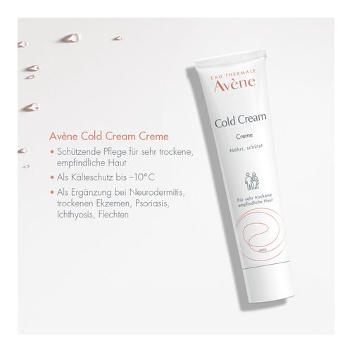 Die Avène Cold Cream Creme schützt die Haut durch den hohen Anteil an weißem Bienenwachs vor dem Austrocknen und macht die Haut wieder weich und geschmeidig. Die leicht duftende Textur wirkt rückfettend und bildet einen Kälteschutz bis zu -10° C (z.B bei Couperose-/Rosacea-Patienten). Die Creme kann auch als Ergänzung bei Neurodermitis, trockenen Ekzemen, Psoriasis, Ichthyosis, Flechten verwendet werden.