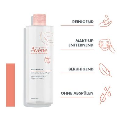 Diese Mizellen-Reinigungslotion reinigt, spendet Feuchtigkeit und beruhigt empfindliche Gesichts- und Augenpartien in einem einfachen Schritt. Täglich entfernt dieses zart duftende Erfrischungswasser Make-up und schenkt Geschmeidigkeit in einem einfachen und schnellen Schritt. Es verbessert die Feuchtigkeitszufuhr und bewahrt das natürliche Gleichgewicht der Haut dank der Kombination von Glycerin und Trehalose und der hohen Konzentration des Avène Thermalwassers mit seinen beruhigenden Eigenschaften.