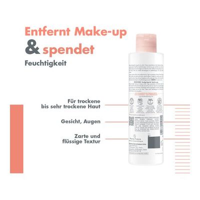 Diese sanfte Abschminklotion reinigt, spendet Feuchtigkeit und bietet Komfort für trockene und sehr trockene, empfindliche Haut. Sie reduziert das Gefühl von Unbehagen, so dass das Abschminken zu einem Vergnügen wird. Diese zart duftende Lotion entfernt Make-up und sorgt für ein angenehmes Hautgefühl in einem einfachen, schnellen Schritt, ohne zu fetten. Die hohe Konzentration des Avène Thermalwassers mit seinen beruhigenden Eigenschaften verbessert die Hydratation und bewahrt das natürliche Gleichgewicht der Haut. Seine Formulierung enthält ein Minimum an Aktivstoffen in genau der richtigen Dosierung, um Wirksamkeit und Verträglichkeit zu gewährleisten. Macht die Haut klar, weich, beruhigt und sorgt für Wohlbefinden.