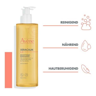 Als erster Schritt in der Anti-Juckreiz-Routine macht das rückfettende Reinigungsöl die Haut weich und komfortabel und schont das Mikrobiom der Haut. Das rückfettende Reinigungsöl ist seifenfrei und hat einen physiologischen pH-Wert, so dass es bei Entzündungen im Gesicht, am Körper und auf der Kopfhaut angewendet werden kann. Parfümfrei und so formuliert, dass das Risiko allergischer Reaktionen minimiert wird, brennt XeraCalm A.D Rückfettendes Reinigungsöl nicht in den Augen und ist ideal für die Haut von Neugeborenen, Kindern und Erwachsenen.