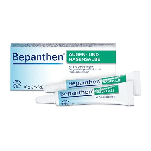 Bepanthen Augen- und Nasensalbe eignet sich für die Anwendung an Augen und Nase: Bei einer wunden Nase und bei trockener, rissiger Nasenschleimhaut unterstützt sie wirksam den natürlichen Heilungsprozess und sorgt für eine nachhaltige Regeneration. Im Auge entfaltet sie ihre heilungsfördernde Wirkung bei oberflächlichen Schädigungen der Bindehaut und der Hornhaut.