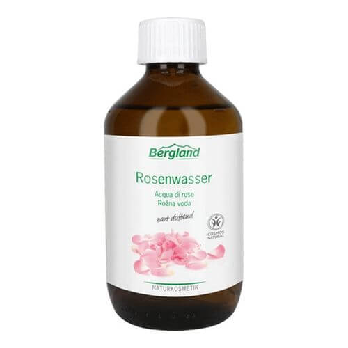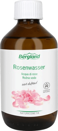 Bergland Rosenwasser duftet zart nach frischer Rosenblüte. Es erfrischt, reinigt und kühlt und empfiehlt sich ganz besonders als Gesichtswasser und für Kompressen. Rosenwasser ist auch eine bewährte Grundlage für die Herstellung eigener Emulsionen.