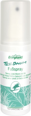 Bergland Teebaum Fußspray mit naturreinem Teebaum-Öl, Salbeiblätter- und Rosmarin-Extrakt wirkt wohltuend bei müden und strapazierten Füßen. Erfrischt bei Fußschweiß und Fußgeruch.