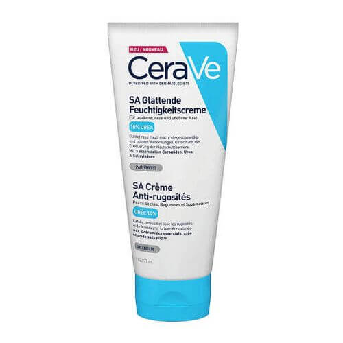 Die SA Urea Glättende Feuchtigkeitscreme mit 10% Urea wurde mit Dermatologen für trockene, raue oder unebene Haut entwickelt. Die Feuchtigkeitspflege spendet der Körperhaut intensiv und langanhaltend Feuchtigkeit, glättet effektiv und stellt gleichzeitig die Hautschutzbarriere wieder her. Auch für zu Reibeisenhaut neigende Haut geeignet.
