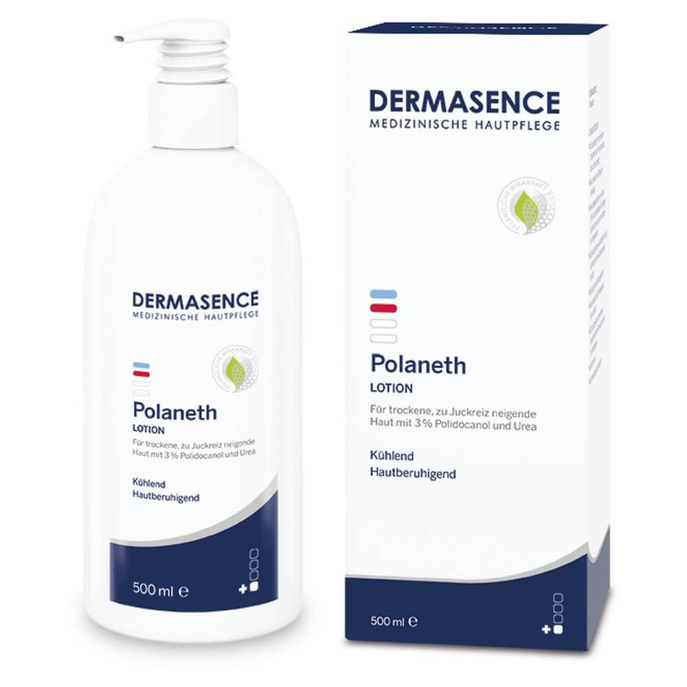 Nach der Reinigung bei Bedarf ein- bis mehrmals täglich entsprechende Hautbereiche mit der DERMASENCE Polaneth Lotion einreiben. Bitte die Hände nach dem Auftragen waschen.