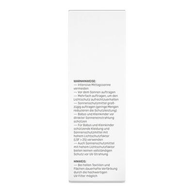 Großzügig auf Gesicht und unbedeckte Hautareale (z. B. Arme, Beine) vor dem Aufenthalt im Freien auftragen, ggf. auch mehrfach, insbesondere jedoch nach Kontakt mit Wasser, um den Schutz aufrecht zu erhalten.