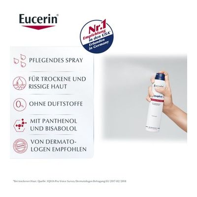 Mit dem Eucerin Aquaphor Protect & Repair Spray kann extrem trockene, rissige und irritierte Haut gepflegt werden und eine schnellere Hautregeneration wird unterstützt. Die Creme im innovativen Sprayformat hilft auch schwer erreichbare, größere Körperregionen, wie z.B. trockene Hautstellen am Rücken oder den Beinen zu versorgen.