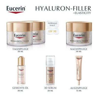 Zur optimalen Ergänzung der täglichen Hautpflege zusammen mit ELASTICITY+FILLER Tagespflege und Eucerin ELASTICITY+FILLER Gesichts-Öl benutzen.
