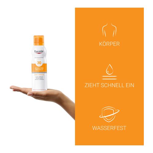 Dank seiner ultraleichten Textur sowie dem Schnell-Trocken Effekt zieht der wasserfeste Sonnenschutz schnell ein, ohne dabei zu kleben oder zu fetten. Das erfrischende Aerosol-Spray sorgt für kontinuierliche, mehrstufige Anwendung, ist auf schwer zugängliche Hautpartien einfach aufzutragen und auch ideal bei behaarter Haut geeignet.