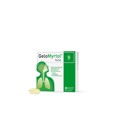 Kopf dicht? Nase zu? Husten? GeloMyrtol® forte ist der pflanzliche Schleimlöser bei Husten, Schnupfen und Druckkopfschmerz. Es löst den Schleim, hemmt die Entzündung und fördert den Heilungsprozess. Das Ergebnis: Sie können wieder spürbar befreit durchatmen, haben weniger Hustenattacken und sind schneller wieder fit.