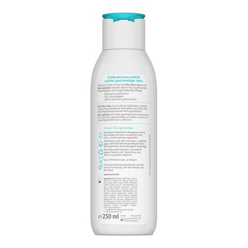 Die milde Formel mit Bio-Aloe Vera & Bio-Jojobaöl schenkt der Haut wohltuende Feuchtigkeit und langanhaltende Pflege.