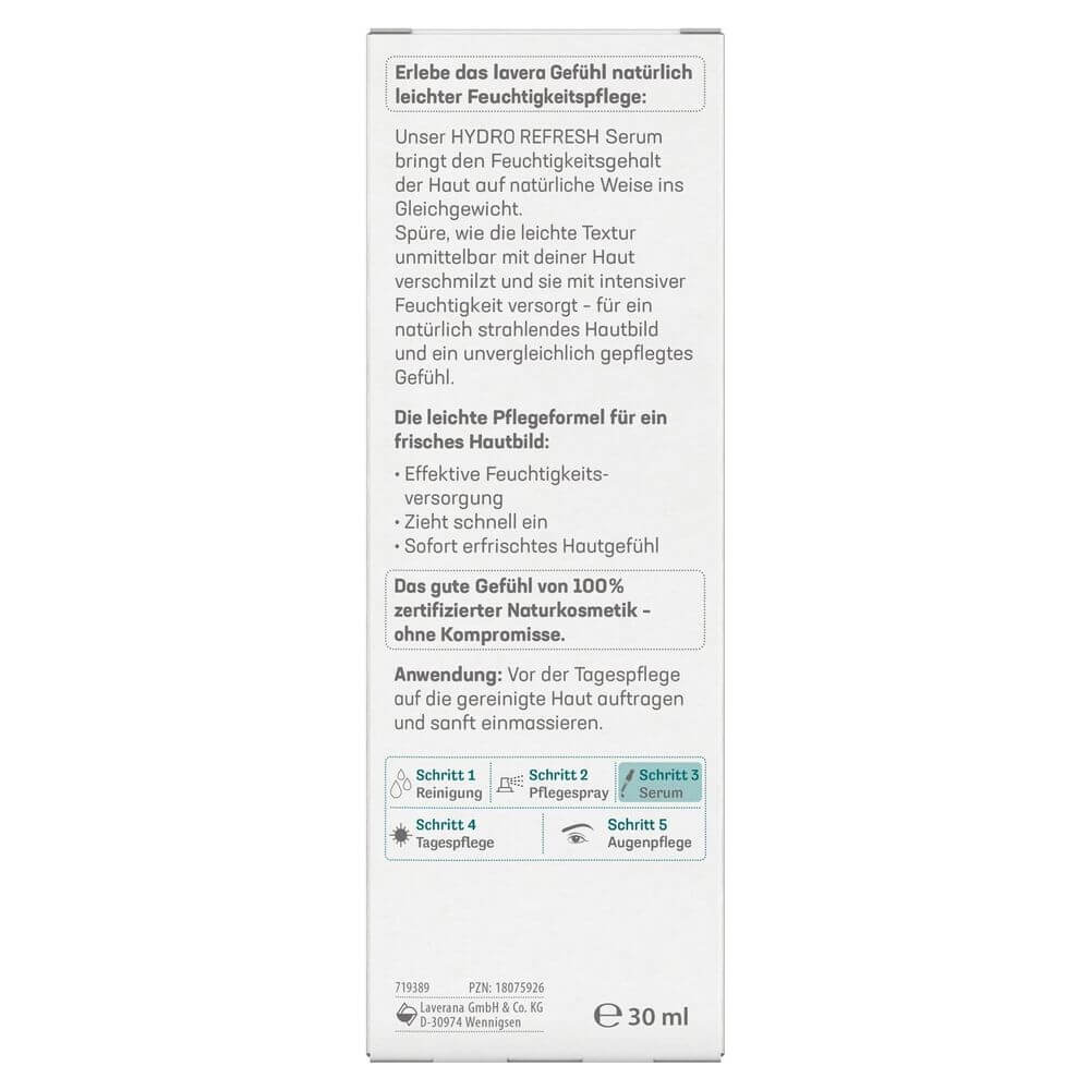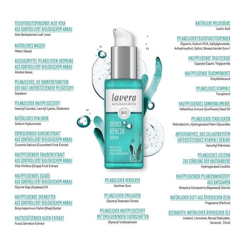 Das Hydro Refresh Serum bringt den Feuchtigkeitsgehalt der Haut auf natürliche Weise ins Gleichgewicht. Die effektive und gut verträgliche Formel füllt die Feuchtigkeitsdepots der Haut langanhaltend auf und stärkt so die Barrierefunktion der Haut. Spüre, wie die leichte Textur unseres Serums unmittelbar mit deiner Haut verschmilzt und sie mit intensiver Feuchtigkeit versorgt - für ein natürlich strahlendes Hautbild und ein unvergleichlich gepflegtes Gefühl.