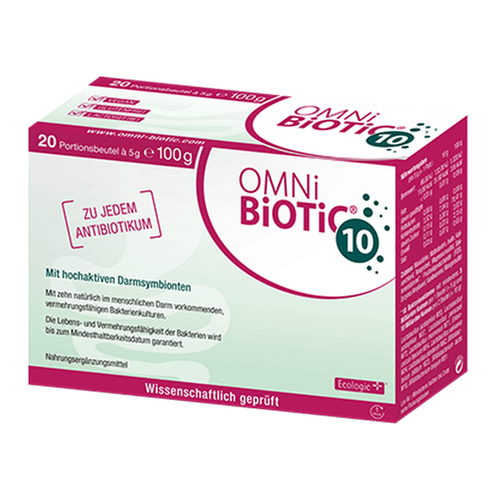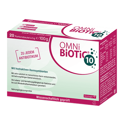 Umfangreiche Studien zeigen, dass das Synbiotikum OMNi-BiOTiC® 10 die Nebenwirkungen der Antibiotika-Therapie – nämlich die durch Antibiotika ausgelösten Durchfälle – stoppen, die Darmflora wieder aufbauen und die Schädigung der Darmschleimhäute bekämpfen kann.