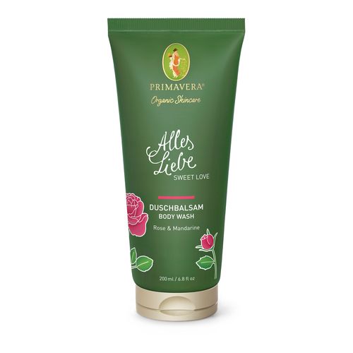 Lass Dich verwöhnen und fühl Dich wohl in Deiner Haut. Erlebe mit dem cremigen Duschbalsam Alles Liebe ein duftendes Pflegeritual und naturreine Bio-Pflanzenkraft. Mit einer sinnlich duftenden Komposition ausgewählter Pflanzenextrakte aus Bio Orangenblütenwasser, Bio Chiasamenöl und Bio Olivenöl verwöhnt er die Sinne, und reinigt besonders hautfreundlich und ph- hautneutral mit milden Zuckertensiden. Sanft in die noch feuchte Haut einmassiert und danach gut abgespült, bewahrt der Duschbalsam Alles Liebe die natürliche Feuchtigkeit der Haut und wirkt rückfettend. Sein verwöhnender Duft aus Bio Rose und Bio Mandarine hüllt Dich sinnlich ein, erfrischt und schenkt Dir pure Harmonie und Freude.