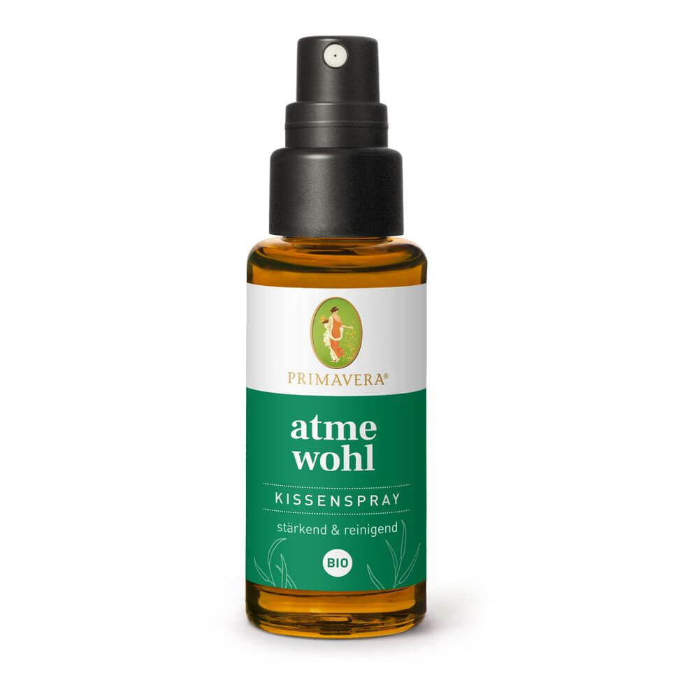Eine gleichmäßige Atmung ist ein wichtiger Bestandteil für Gesundheit und Wohlbefinden. Besonders in der kalten Jahreszeit ist die vorbeugende Pflege sehr wichtig, um sich auch bei niedrigen Temperaturen wohlfühlen zu können. Das Kissenspray aus 100 % naturreinen ätherischen Ölen sorgt für einen stärkenden Duft und schenkt ein frisches Atmewohl-Gefühl. Ätherisches Eukalyptusöl stärkt und erfrischt. Ätherisches Zirbelkieferöl erdet und stärkt.