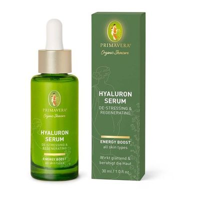 Das PRIMAVERA Hyaluron Serum - De-Stressing & Regenerating fühlt sich fantastisch an und zeichnet sich durch seinen sinnlichen Duft und eine natürliche, innovative Leitpflanzenkompositionen höchster Wirksamkeit aus. Das Hyaluron Serum für alle Hauttypen vereint in sich die pure Pflanzenkraft von Damaszener Rose, Bio Limette und Bio Aloe Vera. Seine innovative Komposition, befeuchtet die Haut intensiv und langanhaltend, und reduziert sichtbare Zeichen von Hautmüdigkeit. Das Hyaluron Serum steht für Naturkosmetik in ihrer wirkstärksten und faszinierendsten Form. Ganz natürlich wirkt es sichtbar hautstraffend, glättend und Hautschäden reduzierend, und schafft ein vital gestärktes Hautbild.