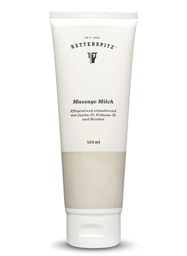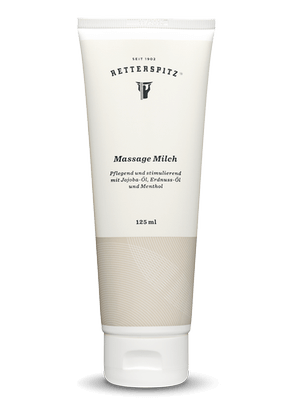 Massage ist nicht gleich Massage: Mit Retterspitz Massage Milch dringen stimulierende Inhaltsstoffe während des Massierens in die Hautschichten ein, erwärmen und lockern die Muskeln. Jojobaöl, Erdnussöl und Menthol stimulieren und erfrischen die Haut nach dem Baden, Duschen und der Sauna.