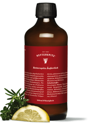 Dass physikalische Anwendungen wirken, wusste schon Hildegard von Bingen. In der modernen Physiotherapie gehören Wasseranwendungen, z. B. als Wickel, heute zur Standardbehandlung. Reine ätherische Öle in Retterspitz Äußerlich unterstützen die bewährte Hydrotherapie. Die medizinische Wickellösung enthält beispielsweise den Naturheilkunde-Klassiker Arnikatinktur. Die Gebirgspflanze wird traditionell bei stumpfen Verletzungen, Muskelschmerzen und Venenbeschwerden eingesetzt. Das in Retterspitz Äußerlich enthaltene Thymol hemmt Entzündungen, Rosmarinöl lässt rheumatische Beschwerden leichter abklingen und bessert Durchblutungsstörungen. Die spezielle Kombination der verwendeten pflanzlichen Inhaltsstoffe ermöglicht ein breites Anwendungsspektrum und eignet sich deshalb nicht nur für die Hausapotheke, sondern auch für den Einsatz im Profisport oder in Kliniken.