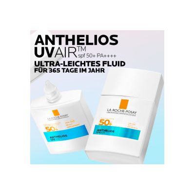 Das La Roche Posay Anthelios UV Air Fluid LSF50+ ist ein Sonnenschutz, welcher der Haut mithilfe der UVAIR™-Technologie einen sehr hohen Schutz vor den Auswirkungen der UVA- und UVB-Strahlung sowie vor langwelligem UVA bietet. Dabei enthält die Formel Hyaluronsäure, um die Haut hydratisiert zu halten sowie Niacinamid welches sowohl die Talgproduktion reguliert als auch für 16 Stunden antioxidativ wirkt. Der feuchtigkeitsspendende Sonnenschutz zeichnet sich durch eine leichte, unsichtbare Textur aus, die ein frisches Hautgefühl hinterlässt und die Haut atmen lässt. Darüber hinaus zieht diese schnell ein, ohne zu fetten oder Rückstände zu hinterlassen.