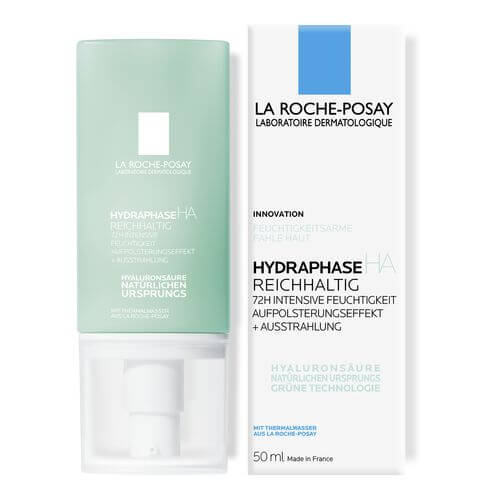 Die HYDRAPHASE HA reichhaltige Gesichtspflege von La Roche Posay spendet der Haut langanhaltend Feuchtigkeit und verleiht intensiv. Mit Hyaluronsäure natürlichen Ursprungs, Sheabutter und Thermalwasser aus La Roche Posay wird die Haut intensiv mit Feuchtigkeit versorgt, aufgepolstert und geschmeidig gepflegt. Die reichhaltige Gesichtspflege wirkt Trockenheit entgegen und schenkt der Haut mehr Ausstrahlung. Die Haut bleibt bis zu 72 Stunden mit Feuchtigkeit versorgt und fühlt sich zart an.