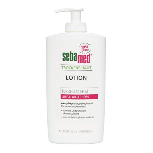 Die parfumfreie sebamed TROCKENE HAUT Lotion Urea Akut 10% wurde als Spezialpflege für Personen mit besonders trockener Haut entwickelt. Ihre ausgesuchten Inhaltsstoffe lindern spürbar Spannungsgefühl, Rauheit und Juckreiz bei sehr trockener Haut und helfen, die natürliche Feuchtigkeitsbalance der Haut wieder herzustellen.