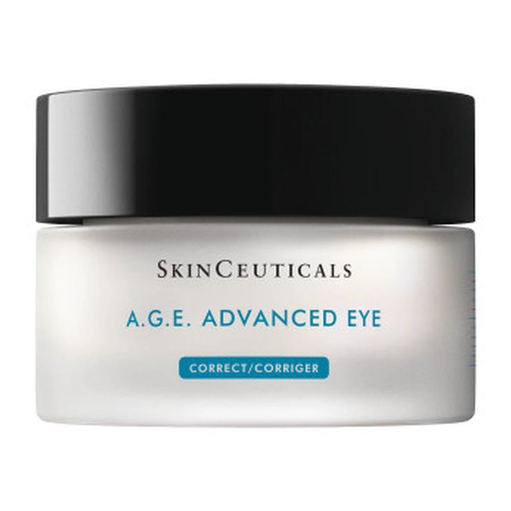 Anti-Aging-Augencreme gegen Augenringe, Augenfalten, Tränensäcke und Krähenfüße. Die Augencreme von SkinCeuticals A.G.E. Advanced Eye enthält eine wirksame Mischung aus Anti-Aging-Wirkstoffen wie Pro-Xylane, antioxidativen Flavonoiden, Süßholzwurzelextrakt und Matrixyl 3000, die der Glykation des Bindegewebes und dem Kollagenabbau entgegenwirken. Auf diese Weise wird die natürliche Hautalterung verlangsamt und Falten an den Augen und Augenringen vorgebeugt. Koffein fördert zudem die Durchblutung und mildert Augenringe und Schwellungen unter den Augen, während optische Weichzeichner die Ausstrahlung der Augenpartie verbessern.