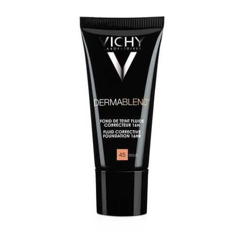 Die flüssige Formel der Teintkorrigierendes Make-up Dermablend verbindet eine hohe Konzentration an Pigmenten für eine optimale Deckkraft mit einer sehr gut aufzutragenden leichte Textur, die so leicht ist, dass sie sich für ein ganz natürliches Ergebnis und für perfekten Komfort über den ganzen Tag mit der Haut verbindet. Beim Kontakt mit der Oberhaut zerschmilzt die flüssige Textur , so dass die Farbe maximal für eine perfekte Abdeckung von Hautunregelmäßigkeiten verteilt werden kann, ohne auszutrocknen und ohne Maskeneffekt.
