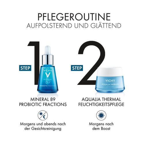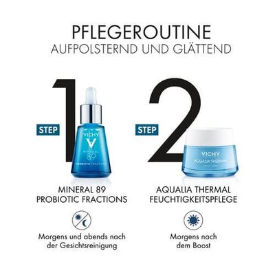 Das MINÉRAL 89 Probiotic Fractions regenerierender & reparierender Booster von Vichy unterstützt und regeneriert intensiv die Hautimmunität. Dank seiner reichhaltigen Formel mit probiotischen Extrakten, welche reich an Vulkanischem Wasser aus Vichy sind, beschleunigt es auf natürliche Art und Weise die sichtliche Erholung der Haut und macht sie spürbar widerstandsfähiger. Die Formel des glättenden Serums enthält zudem Niacinamid, was dabei hilft, den transepidermalen Wasserverlust zu mildern und die Haut so glatter, strahlender sowie elastischer zu machen.