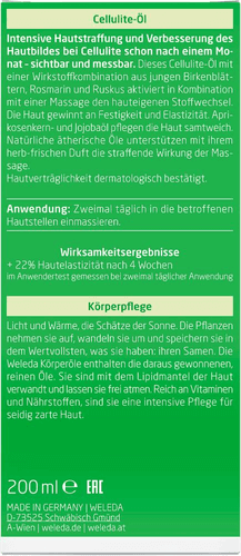 Bringen Sie sich in Form mit dem Weleda Birken-Cellulite-Öl. Von Ökotest mit „Sehr Gut“ ausgezeichnet*, überzeugt das straffende Öl auch die betroffenen Frauen. So wurde es zur erfolgreichsten Produkteinführung auf dem Naturkosmetik-Markt 2004.**