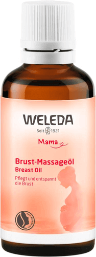 Bereits ab der 38. Woche der Schwangerschaft ist eine Brustmassage mit Weleda Brust-Massageöl empfehlenswert. Wenig Öl in der Hand erwärmen, dann beide Brüste mit leichten, streichenden Bewegungen vom Brustansatz zur Brustwarze hin massieren. Die Brustwarze dabei aussparen. Während der Stillzeit wird die entspannende Massage zwischen den einzelnen Stillmahlzeiten durchgeführt.