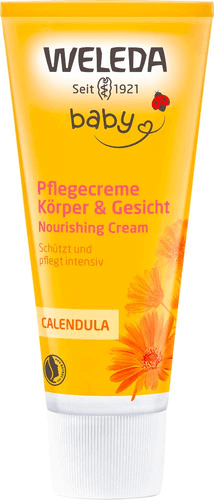 Die Weleda Calendula-Pflegecreme ist ideal für die tägliche Körperpflege von Babys und Kindern. Die reichhaltige Pflegecreme mit sorgfältig ausgewählten Natursubstanzen schützt zarte Haut und hält sie samtig weich. Ein wertvoller Auszug aus Bio-Calendula beruhigt die Haut; hautverwandtes Wollwachs bildet einen zuverlässigen Schutz vor dem Austrocknen. Die mild duftende Creme eignet sich auch sehr gut für die Pflege trockener Hautstellen. Auch im Windelbereich anwendbar, wenn keine nässebedingte Entzündungsneigung besteht.