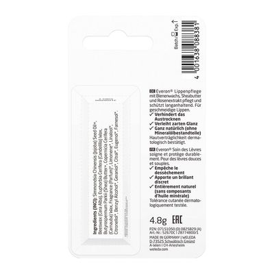 Kälte, Wind und Sonnenlicht ständig ausgesetzt, reagiert die zarte Haut der Lippen sehr empfindlich. Die Everon® Lippenpflege von Weleda besänftigt und pflegt - ohne einen Film auf der Haut zu hinterlassen.