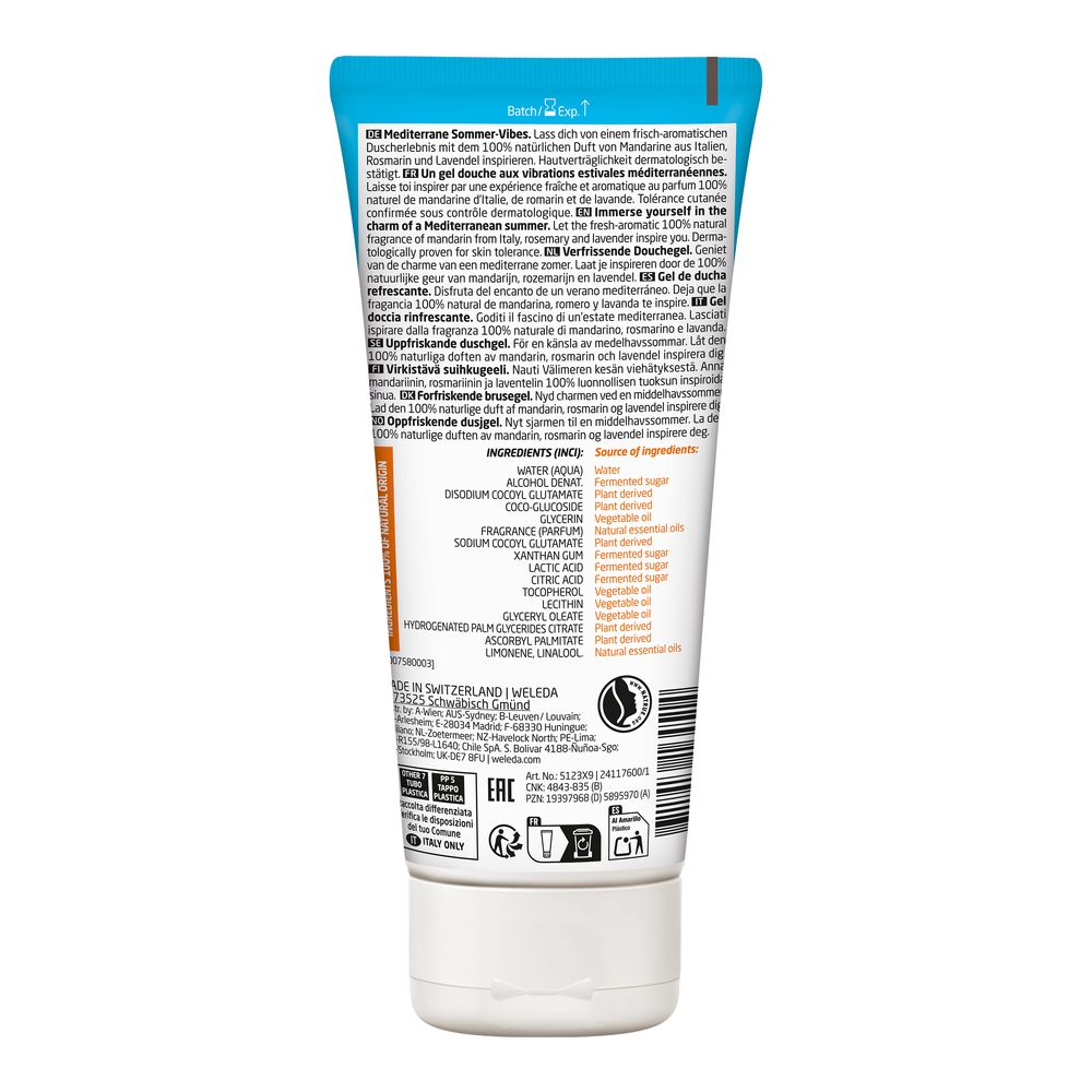 Hol dir den Duft des Sommers ins Badezimmer – für deinen ganz persönlichen Me-Moment des Tages! Im warmen Wasserdampf der Dusche entfaltet der aromatische Duft unseres Duschgels seine volle Wirkung. Essenzen von roter Mandarine, Lavendel und Rosmarin umgeben dich sanft und nehmen dich mit auf eine Sinnesreise ans Mittelmeer. Das leichte Gel reinigt deine Haut gründlich, ohne sie dabei auszutrocknen.