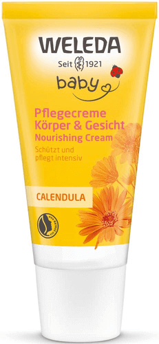 Die Weleda Calendula Pflegecreme Körper & Gesicht ist ideal für die tägliche Körperpflege von Babys und Kindern. Die reichhaltige Pflegecreme mit sorgfältig ausgewählten Natursubstanzen schützt zarte Haut und hält sie samtig weich. Ein wertvoller Auszug aus Bio-Calendula beruhigt die Haut; hautverwandtes Wollwachs bildet einen zuverlässigen Schutz vor dem Austrocknen. Die mild duftende Creme eignet sich auch sehr gut für die Pflege trockener Hautstellen.