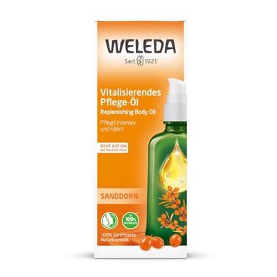 Leichtes Sesamöl und besonders das reichhaltige Sanddornöl sind wahre Alleskönner für die vitalisierende und regenerierende Hautpflege. Sie unterstützen den natürlichen Wärmeprozess des Menschen, indem sie den Körper in einen hauchzarten, atmungsaktiven Schutz warm einhüllen. Das durch die enthaltenen Carotinoide rotgoldene Sanddornöl u.a. aus biologischem Anbau in der Toskana wird exklusiv für Weleda in einem besonders schonenden Verfahren gewonnen. Es ist reich an ungesättigten Fettsäuren und natürlichen Vitaminen, die zu den Vitalbausteinen der Zellen im menschlichen Organismus gehören und die wichtige Barrierefunktion der Haut unterstützen. Die Haut gewinnt neue Vitalität, zeigt sich sichtbar erholt und wird spürbar glatter. Das Sanddorn Vitalisierende Pflege-Öl belebt nicht nur die Haut, sondern auch die Sinne! Der fruchtig-frische Duft aus Mandarine, Grapefruit und Orange macht die tägliche Körperpflege zum wahren Genusserlebnis.