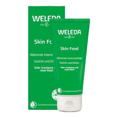 Weleda Skin Food ist eine natürliche Basispflege für die ganze Familie – besonders bei trockener, rauer und spröder Haut. Die wirksame Komposition mit Auszügen aus Stiefmütterchen, Kamillen- und Calendulablüten hat traditionell eine hautberuhigende Wirkung. Schon seit 90 Jahren vertrauen unsere Kunden diesem Klassiker von Weleda – für glatte und zarte Haut.