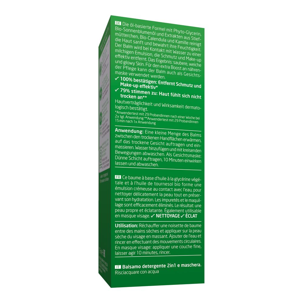 Unsere neue ölbasierte Formel mit Phyto-Glycerin und Pflanzenextrakten aus Stiefmütterchen, Bio-Ringelblume und Kamille reinigt deine Haut sanft und erhält gleichzeitig ihre natürliche Feuchtigkeit. Eine kleine Menge genügt. Skin Food 2in1 Cleansing Balm & Maske verwandelt sich bei Kontakt mit Wasser zu einer milchigen Emulsion, die Schmutz und Make-up effektiv entfernt. Der Balm reinigt sanft und feuchtigkeitsbewahrend. Deine Haut wird sauber, weich und glowy.