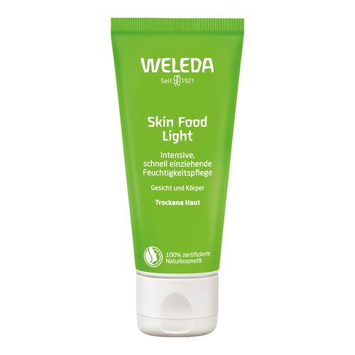 Skin Food Light stillt den Durst trockener Haut sofort und versorgt sie mit intensiver Feuchtigkeit. Die seidige Creme beruhigt die Haut mit ihrer reichhaltigen Formulierung und wertvollen Pflanzenextrakten aus Stiefmütterchen, Calendula- und Kamillenblüten. Zudem schützen Bio-Sonnenblumenöl, Bio Shea-Butter und Bio-Kakaobutter die vor dem Austrocknen und versorgt sie nachhaltig mit Feuchtigkeit.
