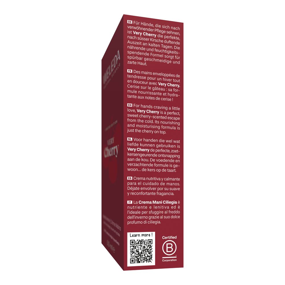 Für zarte und geschmeidige Hände eine perlengroße Menge der Handcreme auftragen, sanft einmassieren, einziehen lassen – und den Duft nach süßen Kirschen genießen.