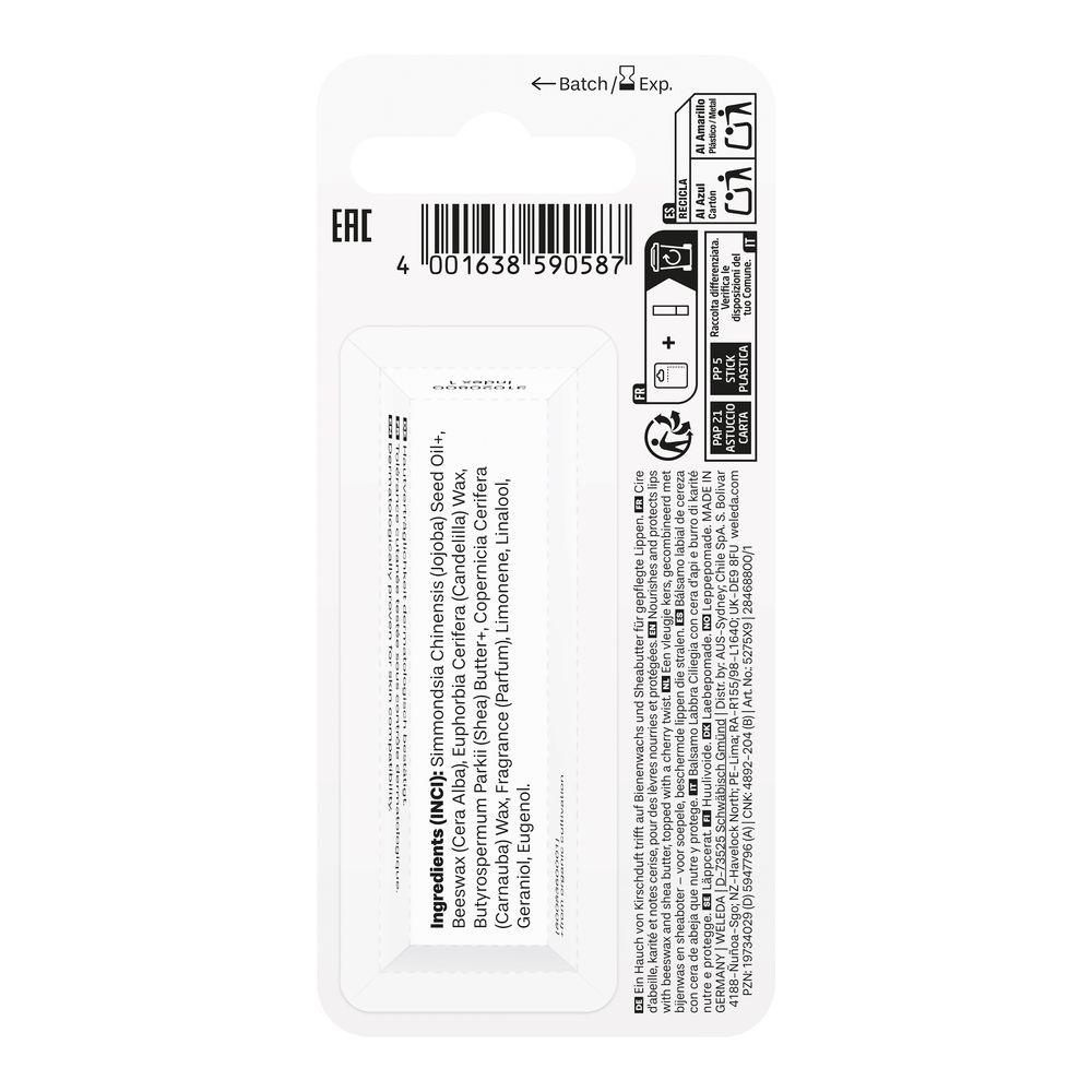 Lass dich vom unwiderstehlich fruchtigen Duft der Very Cherry Lippenpflege verführen und verwöhne deine Lippen mit ihrer nährenden und schützenden Formel! 100 % natürliche Inhaltsstoffe wie wertvolles Bienenwachs und Bio-Sheabutter pflegen deine Lippen zart und geschmeidig. Sie spenden intensiv Feuchtigkeit und schenken natürlichen und gepflegten Glanz. Genieße mit der Very Cherry Lippenpflege echte Verwöhnmomente! Die Hautverträglichkeit ist dermatologisch bestätigt.